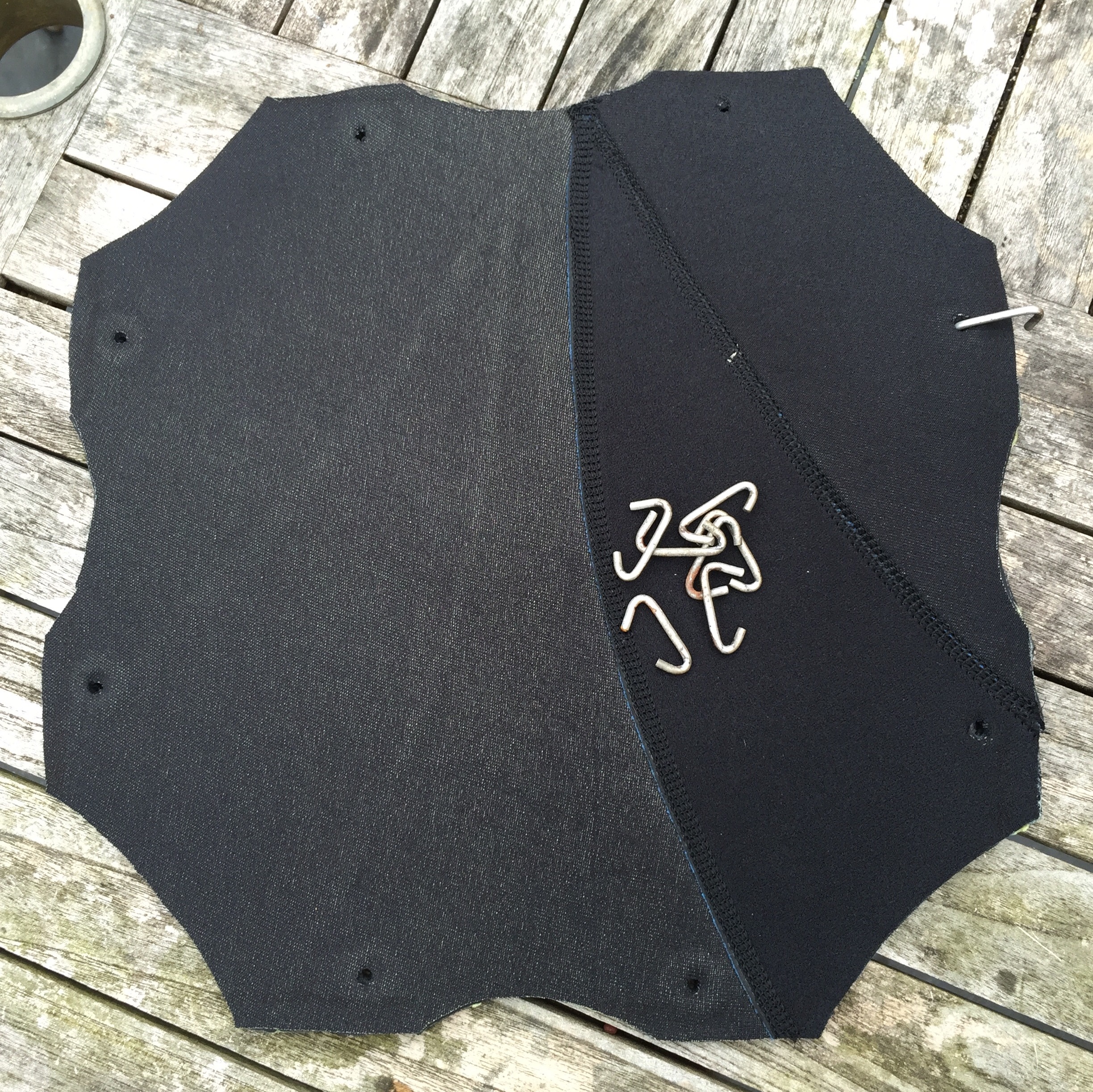 Step 1: Cut the wetsuit into several flat pieces (I advise cutting along the inner thigh; leg sections are quite wide when opened-out) then trace roughly around the old diaphragm with a sharpie. Thin neoprene is more stretchy than the original rubber so I cut two pieces to glue together, and also cut about 10mm inside the drawn outline to try and accommodate for the extra tension needed.